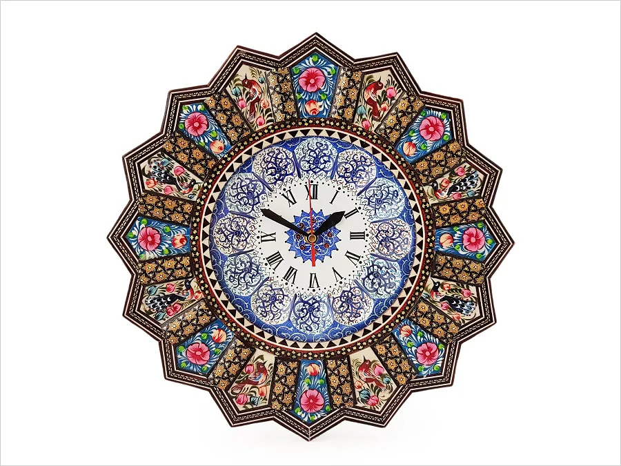 با استفاده از هنر میناکاری ایرانی، این ساعتها با طرحها و الگوهای رنگارنگ و دلنشینی تزئین شدهاند. طرحهای هنری و شیک آنها، زیبایی و جذابیت خاصی به دیوارهای شما میبخشند.