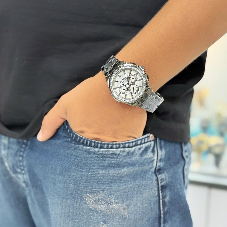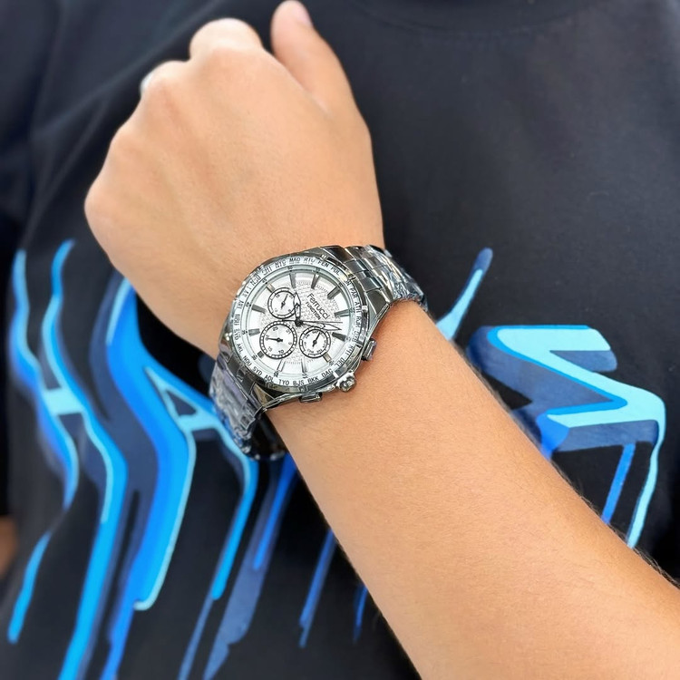 ساعت مچی مردانه با سه موتور فعال، رنگ ثابت، موتور اصل ژاپن و ضد آب، همچنین دارای یکسال ضمانت کارکرد موتور.