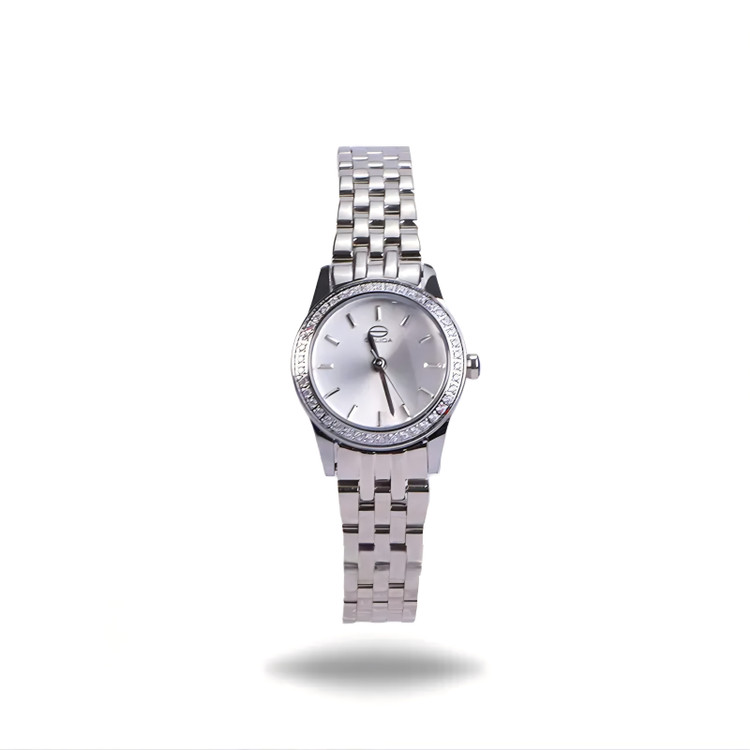 قاب فلزی با رنگ نقره ای، زیبایی و لمس زنانگی را به هر استایلی القا میکند. با صفحهی گرد و نمایشگر ایندکس خط دار و قاب نگینی ، این ساعت انعطافپذیری و زیبایی را به ترکیبی ایدهآل تبدیل میکند.