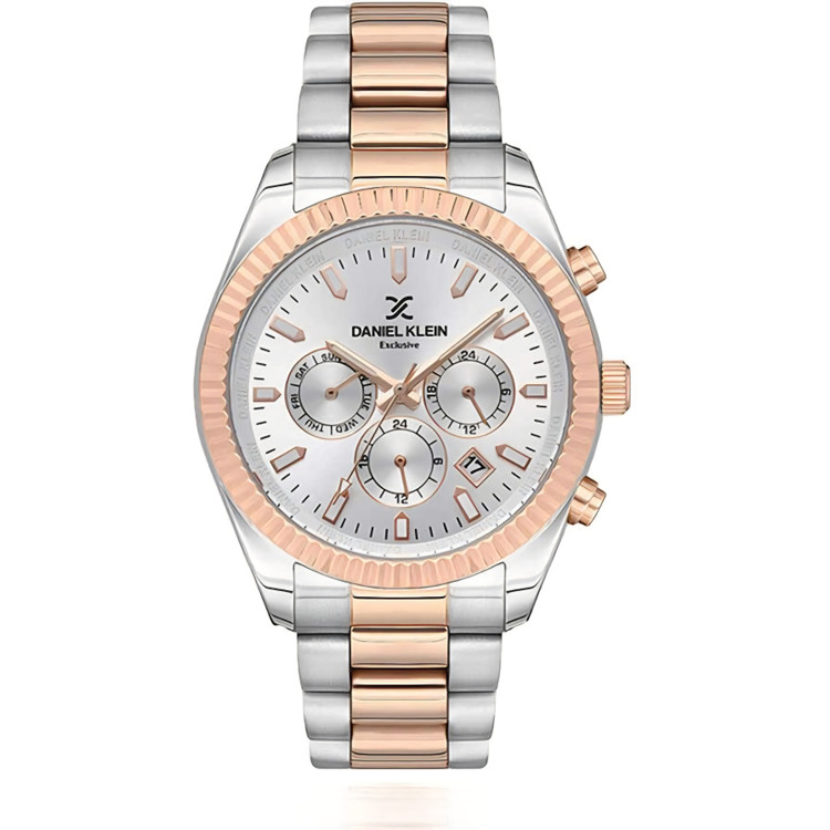 ساعت مچی مردانه دنیل کلین مدلDK1.12863 با طراحی گرد قاب کنگره ای رزگلد و بند استیل نقره ای رزگلد، از جذابیت و شیکی بینظیری برخوردار است. جنس بدنه و بند از استیل نقره ای رزگلد با کیفیت بالا و صفحه سفید سه موتوره به آن ظاهری خوشپوشانه و با دوام میبخشد. این ساعت با استایل اسپرت,کلاسیک و مجلسی مناسب برای مردان شیک پوش است.
