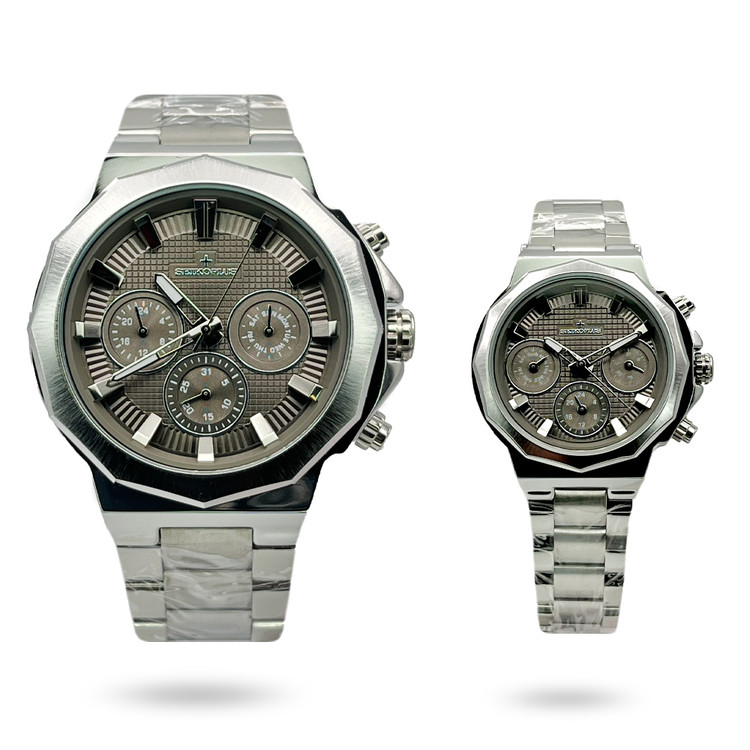 ساعت مچی ست زنانه مردانه سیکوپلاس مدلS1051 با طراحی چندضلعی و بند استیل نقره ای و صفحه طوسی از جذابیت و شیکی بینظیری برخوردار است. جنس بدنه و بند از استیل نقره ای با کیفیت بالا، به آن ظاهری خوشپوشانه و با دوام میبخشد. این ساعت با استایل اسپرت مناسب برای زوج های های شیک پوش است.