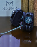 ساعت ست ونیز با طراحی گرد و الگوی ایندکس خط دار، نمایی شیک و مدرن را ارائه میدهد. تمام مشکی بودن بند و قاب این ساعت، جلوهای لوکس و اسپرت به آن بخشیده است. این ساعت به خوبی با هر نوع لباسی هماهنگ میشود و میتواند گزینهای عالی برای مهمانیها و مراسم رسمی باشد.