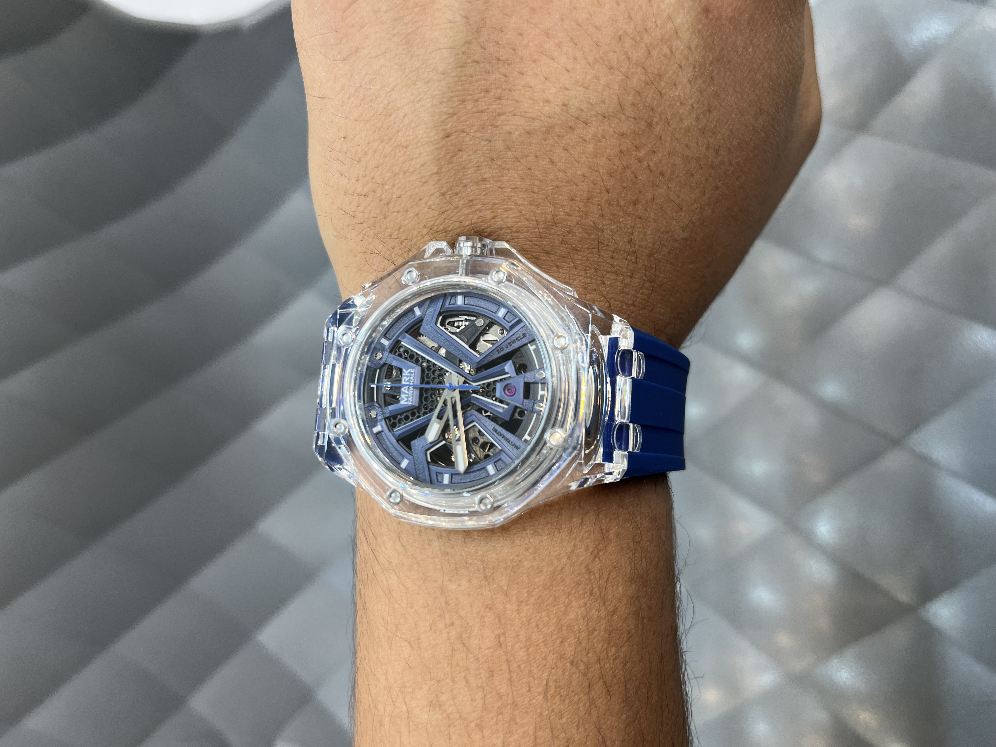 ساعت عقربه ای مردانه اتوماتیک مارک فرول مدلFW6550 یکی از بهترین انتخابها برای طراحی اسپرت، ظرافت، و کیفیت ساخت است. این ساعت با طراحی اسکلتون، موتور اتوماتیک و قفل سگکی، از جنس شیشه معدنی و با رنگ بندآبی انتخاب بسیاری از علاقمندان به ساعتهای مچی آنالوگ، اسپرت و لوکس است.