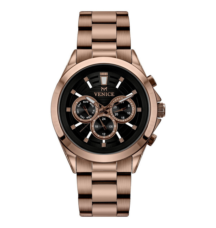 ساعت مچی مردانه ونیزمدلVN801253402تمام رزگلد سه موتور فعال، مناسب برای مردانی است که به دنبال جزئیات فنی و طراحی شیک هستند. بسته بندی شیک اورجینال و امکانات گارانتی و خدمات پس از فروش برای خریداران اهمیت زیادی دارد.