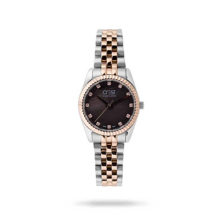 ساعت مچی زنانه CREST نمادی از زیبایی و سلیقه در جهان اکسسوریهای زنانه، با میزان مقاومت در برابر آب ۳ atm و طراحی آنالوگ، در رنگ نقرهای رزگلد ، یک جواهر نفیس در دست زنان است. این مدل، با قابلیتهایی چون موتور ساده ژاپنی اعتبار برند را با گارانتی یک سال و خدمات پس از فروش دو سال، تضمین مینماید.