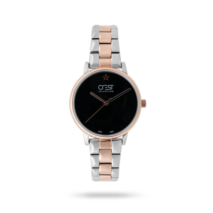 ساعت مچی زنانه CREST نمادی از زیبایی و سلیقه در جهان اکسسوریهای زنانه، با میزان مقاومت در برابر آب ۳ atm و طراحی آنالوگ، در رنگ نقرهای کافی، یک جواهر نفیس در دست زنان است. این مدل، با قابلیتهایی چون موتور ساده ژاپنی اعتبار برند را با گارانتی یک سال و خدمات پس از فروش دو سال، تضمین مینماید.