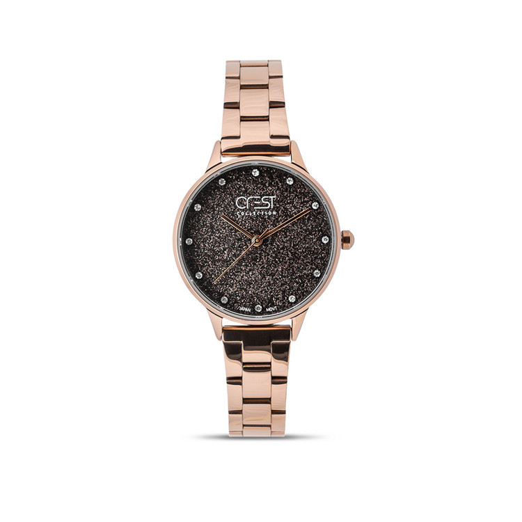 قاب فلزی با رنگ کافی، زیبایی و لمس زنانگی را به هر استایلی القا میکند. با صفحهی گرد شاینی و نمایشگر ایندکس نگین دار، این ساعت انعطافپذیری و زیبایی را به ترکیبی ایدهآل تبدیل میکند.